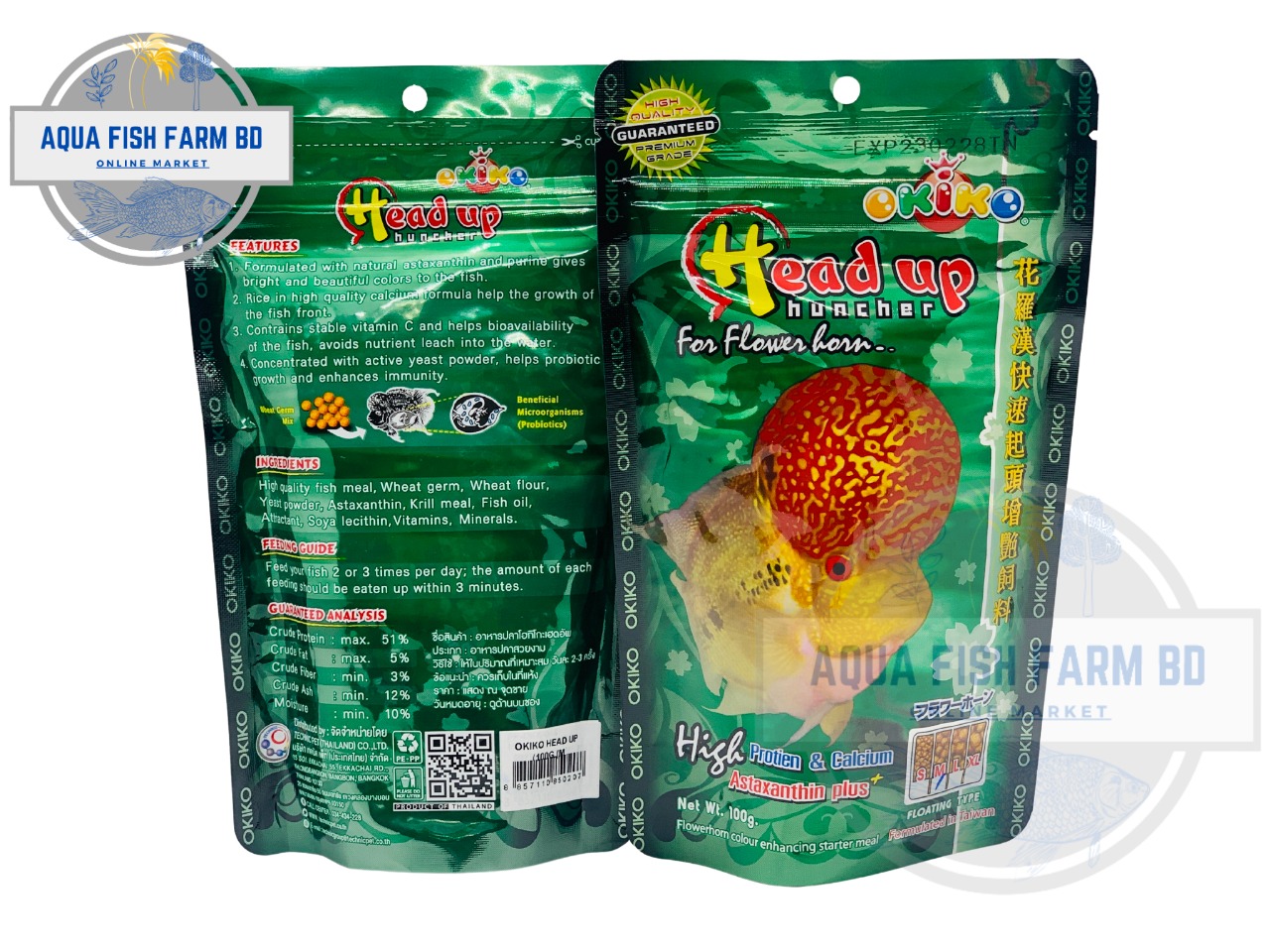 A **high-protein floating pellet** formulated to enhance **kok (head bump) growth** and **color vibrancy** in Flowerhorns. This version also includes **Astaxanthin Plus** and **Calcium**, making it suitable for boosting both **head structure** and **color intensity**.