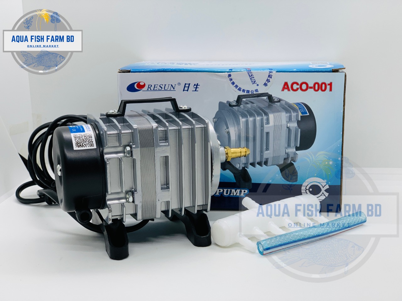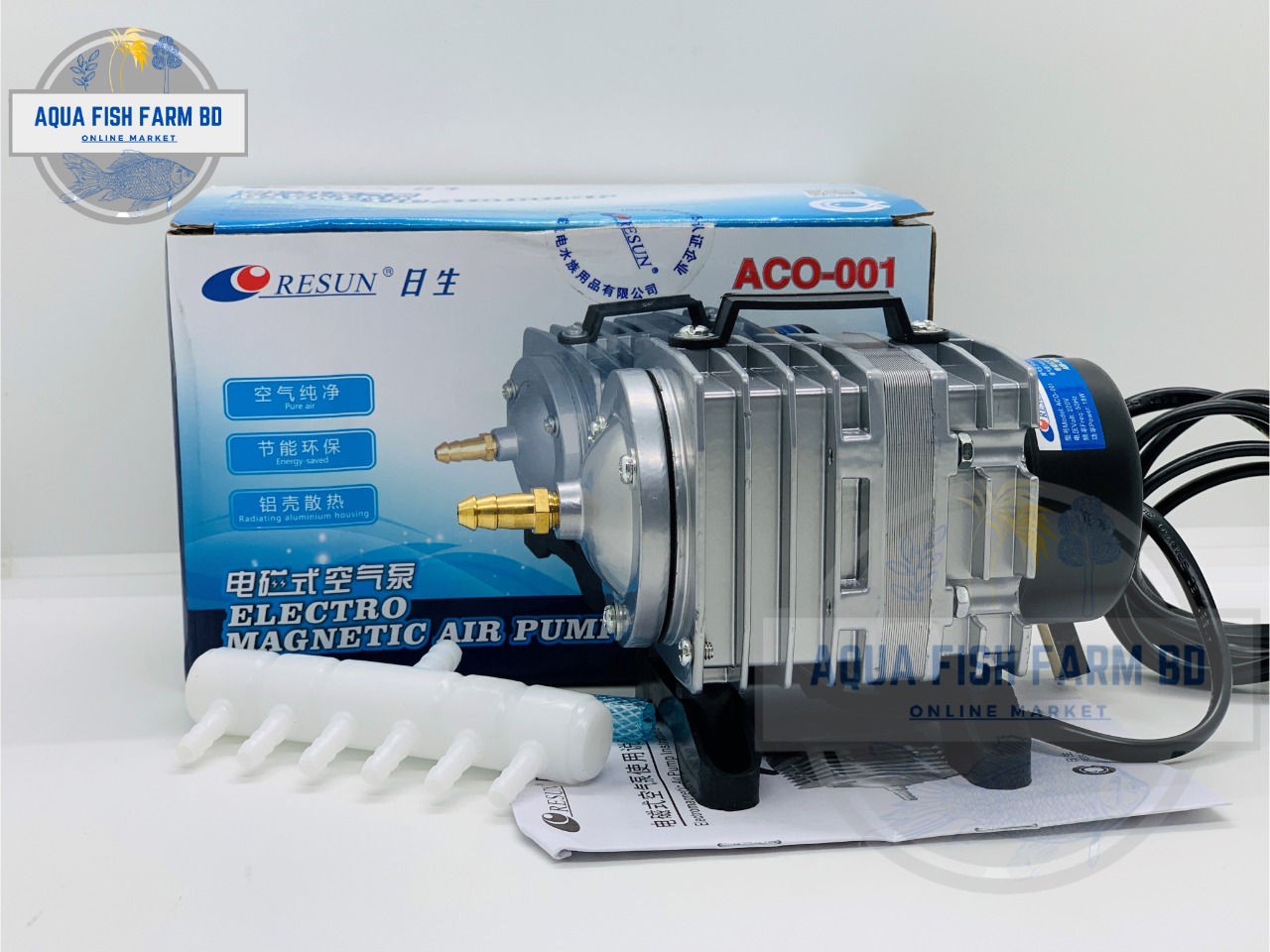 Resun, Electro Magnetic Air Pump, Model : ACO-001, Power : 18W, Pressure : 0.020MPa, Made In China.