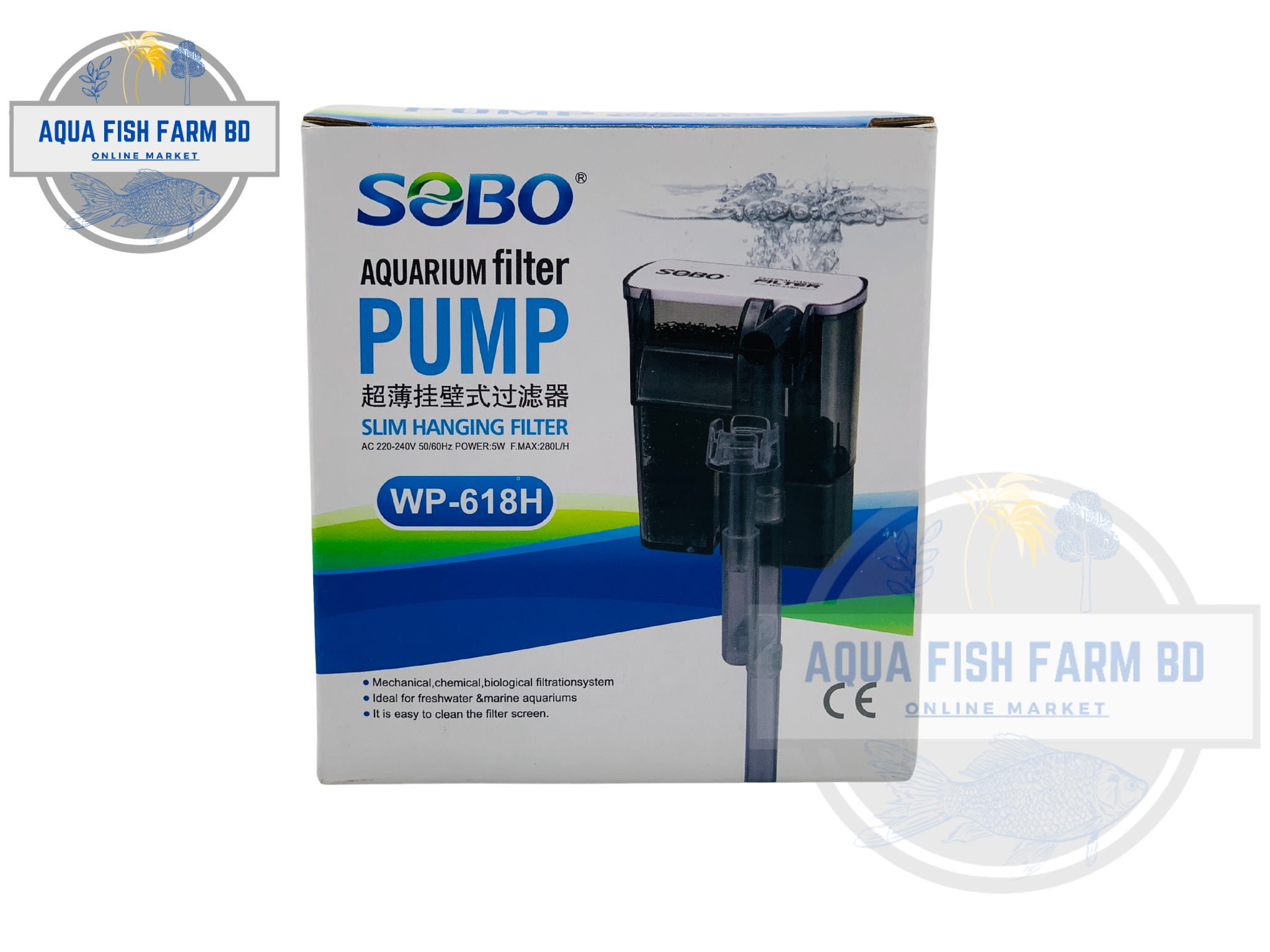 Sobo WP-618H (5Watt,280L/H) Slim & Small Hanging Filter